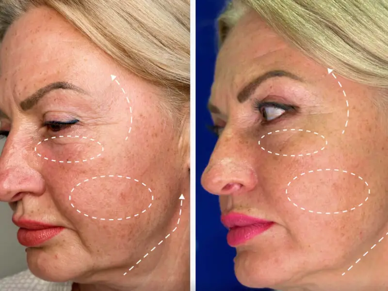 Az első kezelés után már észrevehető a bőr feszesedése és ragyogása.